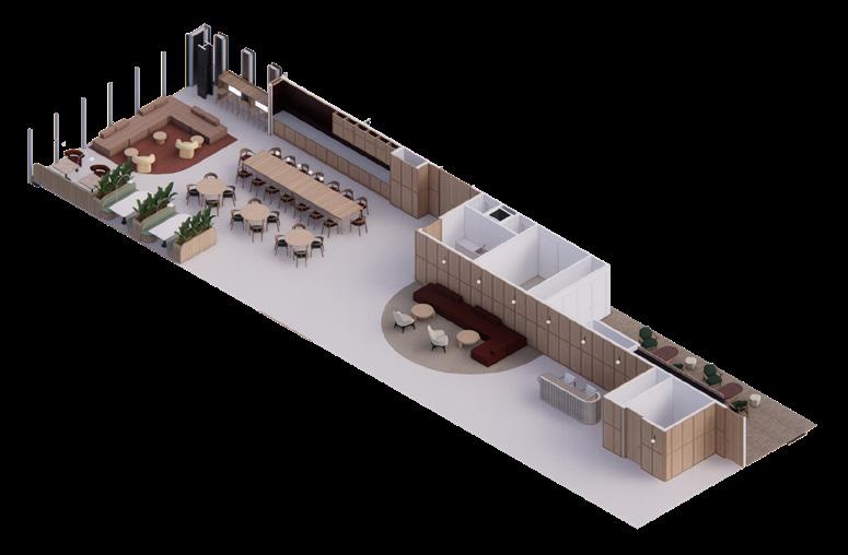 The project plan renders showcased on this page are schemes that I had the opportunity to work on and were created for project pitches based in the UK and the Netherlands, both of which were won by our practice. My role in these pitches was to brainstorm improved office layouts, including the additional spaces listed in the brief with my team, and translate this into Revit, applying materials also to create the plans and axos shown here which were rendered using Enscape.