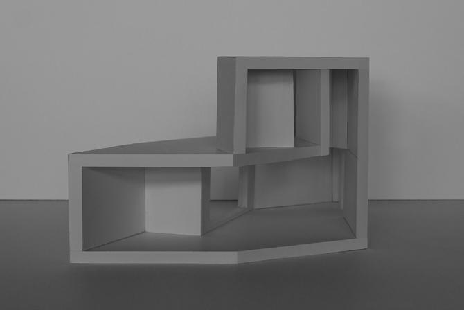 This CHUNK MODEL STUDY features stacked units at varying degrees off of a central datum. This process begins to shape the interior and exterior spaces and define the vertical relationship of spaces between the proposed units.