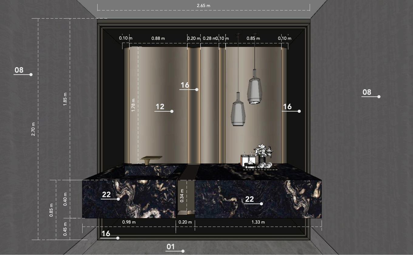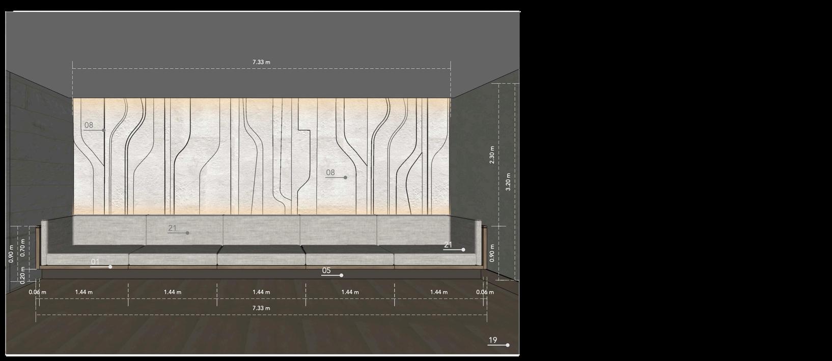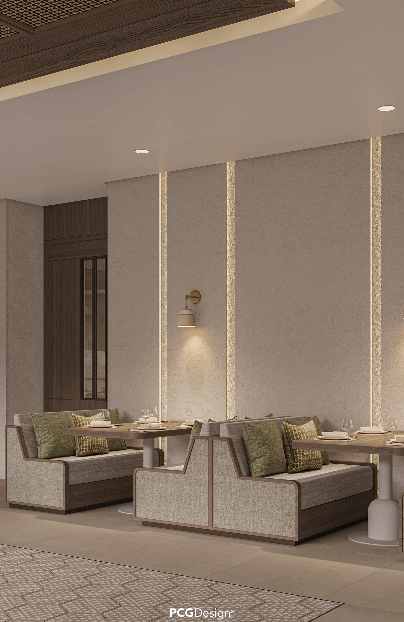 My role invo ved curat ng high-end furniture from luxury brands selecting premium lighting, materials and finishes and defining technical details such as ceiling designs, wall treatments, and bespoke elements to elevate the overall ambiance