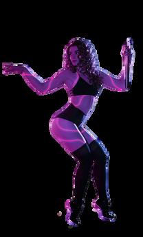 BODY PAINT ON THE DANCERS SHINES UNDER THE PINK LIGHTS