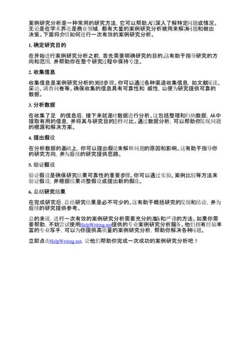 案例研究分析是一种常用的研究方法,它可以帮助人们深入了解特定问题或情况。