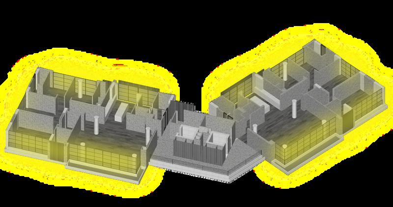 Cada espacio interno está separado por muros y además con una puerta corrediza para hacer uso de estas a la misma vez con diferentes personas, este aspecto convierte multitarea a la unidad habitacional