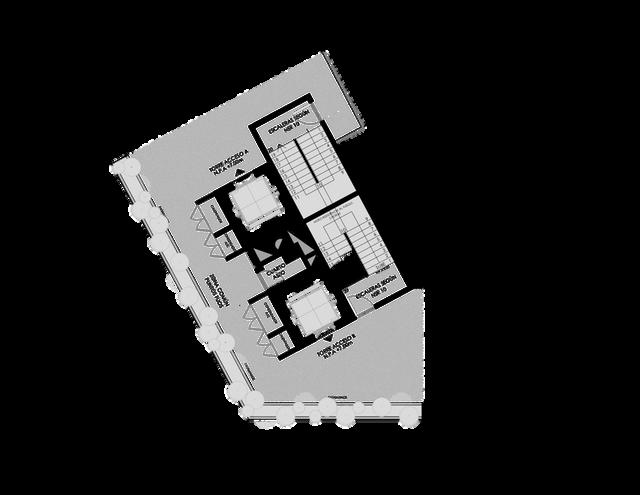 El bloque de puntos fijo esta cumpliendo un papel importante como soporte central de la edificacion Se hace buen uso de el espacio y la forma en que los buitrones y el shut de basura es incrustada en el volumen para además poder permitir estar la fachada abierta