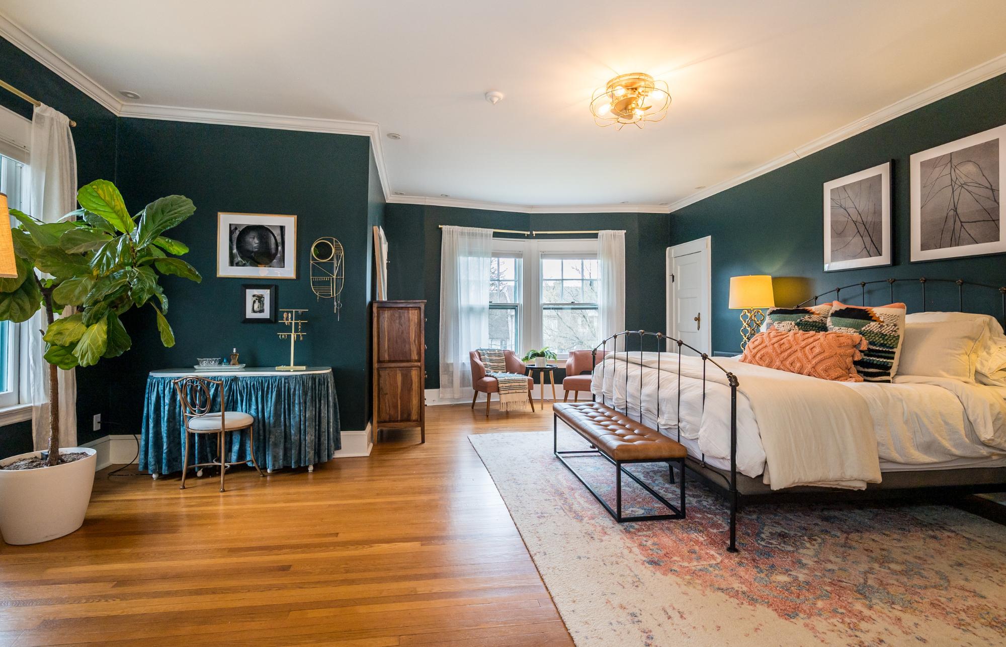 There is something special to discover in every room of this house, but let’s start with the porches – one of our favorite features As soon as the weather allows, we spend as much time as possible outside Whether eating our first Spring green salad harvests in the privacy of the secluded side porch or watching the summer fireflies emerge while waving to passersby from the front porch, these outdoor spaces transform the vibe and floorplan of the house throughout the warmer months That being written, this house is a FULL winter embrace as well We spend nearly every cold-weather night cuddled up on the couch with the fire roaring in the HUGE living area We call this room the “ballroom” as, with a quick furniture rearrangement, you can throw an epic dance party for the entire neighborhood with room for a full 10-piece band (and we have!) Add to this a second sitting room, butler’s pantry (with additional dishwasher), and a large, gorgeous, wainscot dining room and this house is a dream-come-true for anyone who likes to entertain