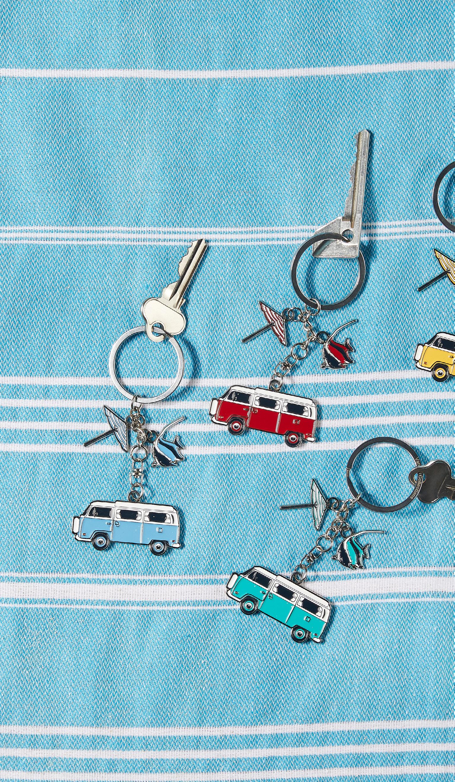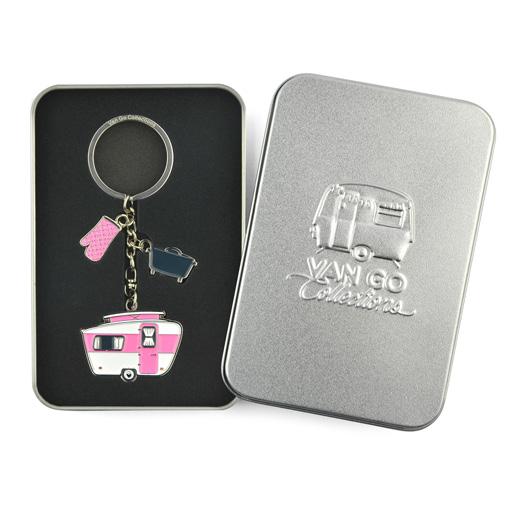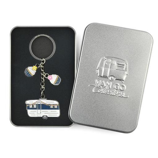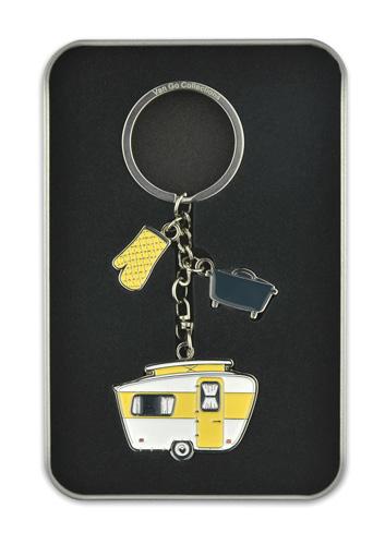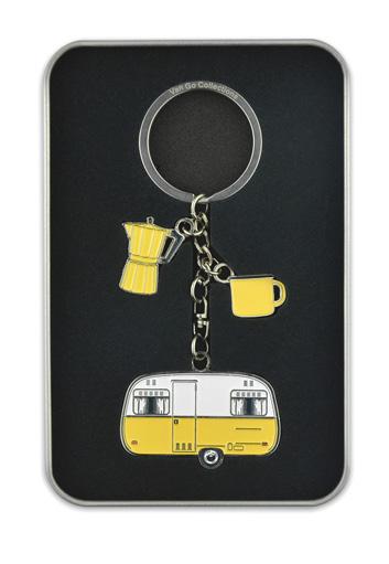 Featuring iconic caravans adorned with matching charms and presented in a reusable metal gift box with our logo embossed in the lid, our keyrings are made from durable metal, with vibrant enamel colouring and a swivel chain. These caravan keyrings are the perfect gift for friends and family.