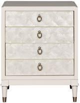 Finish: White Frost. Turned Legs with Brushed Nickel Ferrules, Premium White Capiz Face (upcharge), Teardrop Ring Pulls in Brushed Nickel/One Centered on Each Drawer.