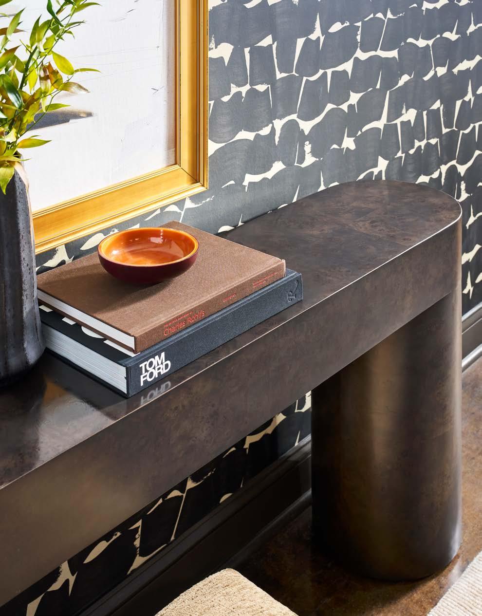 Hello sexy. The instant sophistication this versatile console table adds to a space is undeniable. Its svelte curves and shapely form are brought to life in stunning mappa burl veneers.