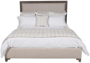 B. SADIE KING BED 594CK-PF (Make It Yours Beds) (W 83 D 85 H 66) Fabric: Sally Mineral. Finish: Mocha. Maple Hallmark Legs. C. PERRY TWO DRAWER NIGHTSTAND CC232 (Make It Yours Bedroom) (W 32 D 20 H 30) Finish: Mocha. Beech and Maple Solids and Veneers, Two Drawers, Clip Corner Face, Small Wallace Pulls/One Centered on Each Drawer, No Base Options. All MIY Bedroom drawer faces and hardware options are available.