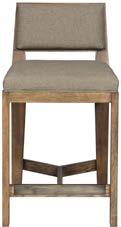 A. WISSEN OTTOMAN V994-OT. (W 21 D 21 H 20.25) Fabric: Jesse Steel. Finish: Flaxen Stone. Ash Base. B. STRETTO CONSOLE P500S. (W 70.5 D 16 H 30) Finish: Mocha. Oak Solids and Veneers on Base, Parchment on Top Box in Bisque, Chestnut (shown) , Natural or Shadow. C. WELLS VANITY STOOL V1197-VS. (W 22 D 23 H 29.5) Fabric: Kayden Natural. Memory Return Swivel.