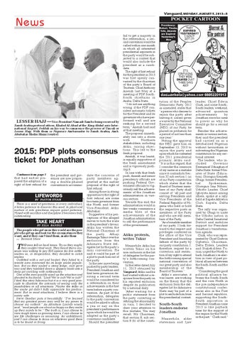 2015: PDP plots consensus ticket for Jonathan Continues from page 1 that had earlier proposed the adoption of a right of first refusal for