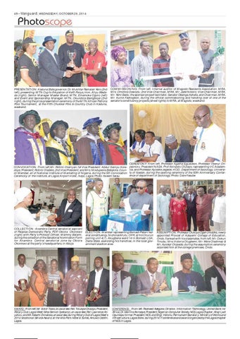 AWARD: From left, Mr. Victor Tasie, an awardee; Rot. Tolulope Onalaja, President, Rotary Club Lagos West; Miss Semiat Oyebanjo, an awardee; Rot. Lawrence Anyafulu, and Mr. Kelechi Chinekwe, an awardee, during Rotary Club of Lagos West's 2014 Vocational Service Award, at the Villa Park Hotel & Suites, Amuwo Odofin, Lagos.