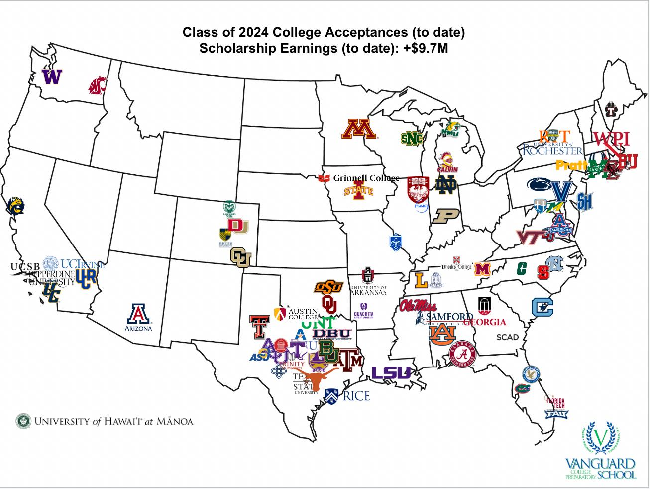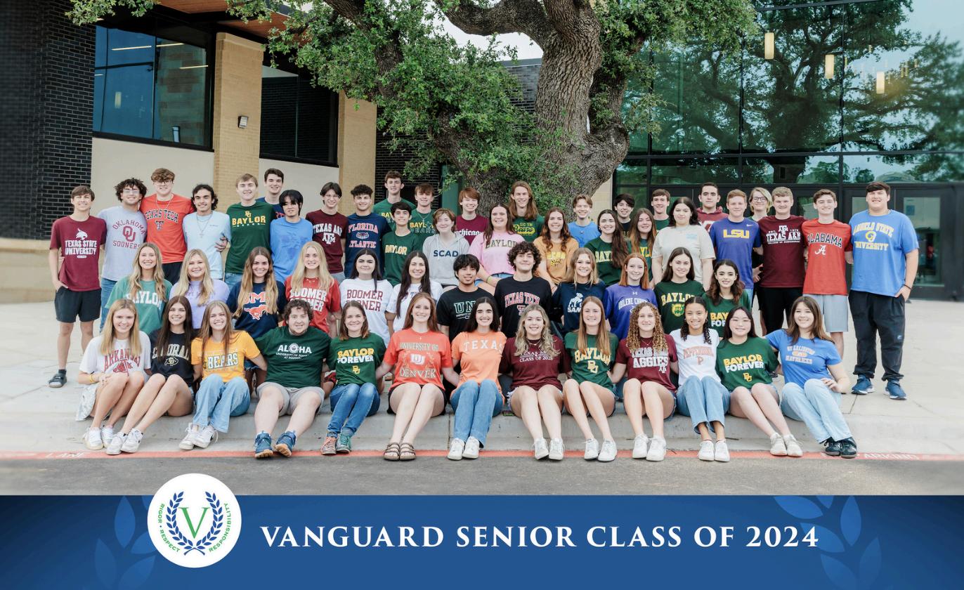 This year, our mock trial team placed 7th in the state. The class of 2024 graduated 55 students, the largest class in Vanguard history, collectively earning over $10 million in merit scholarships This class also had the only National Merit Scholar in Central Texas, with several Commended and multiple AP Honor students. Vanguard hosted many alumni events, including the AI Informational event for the community