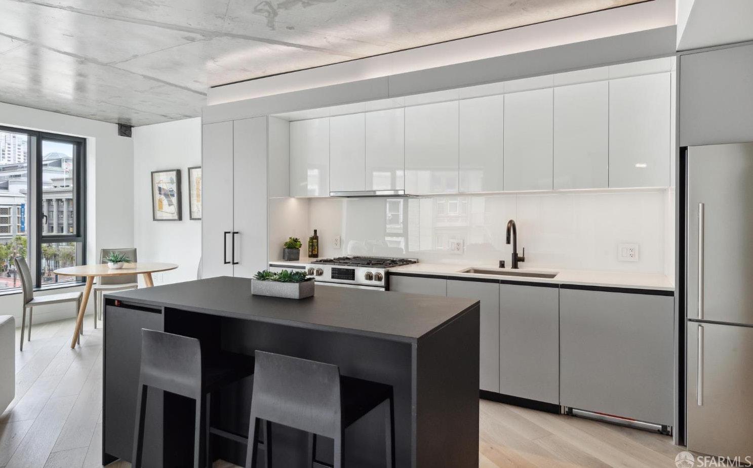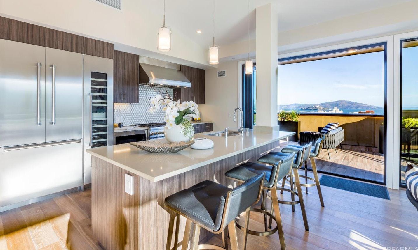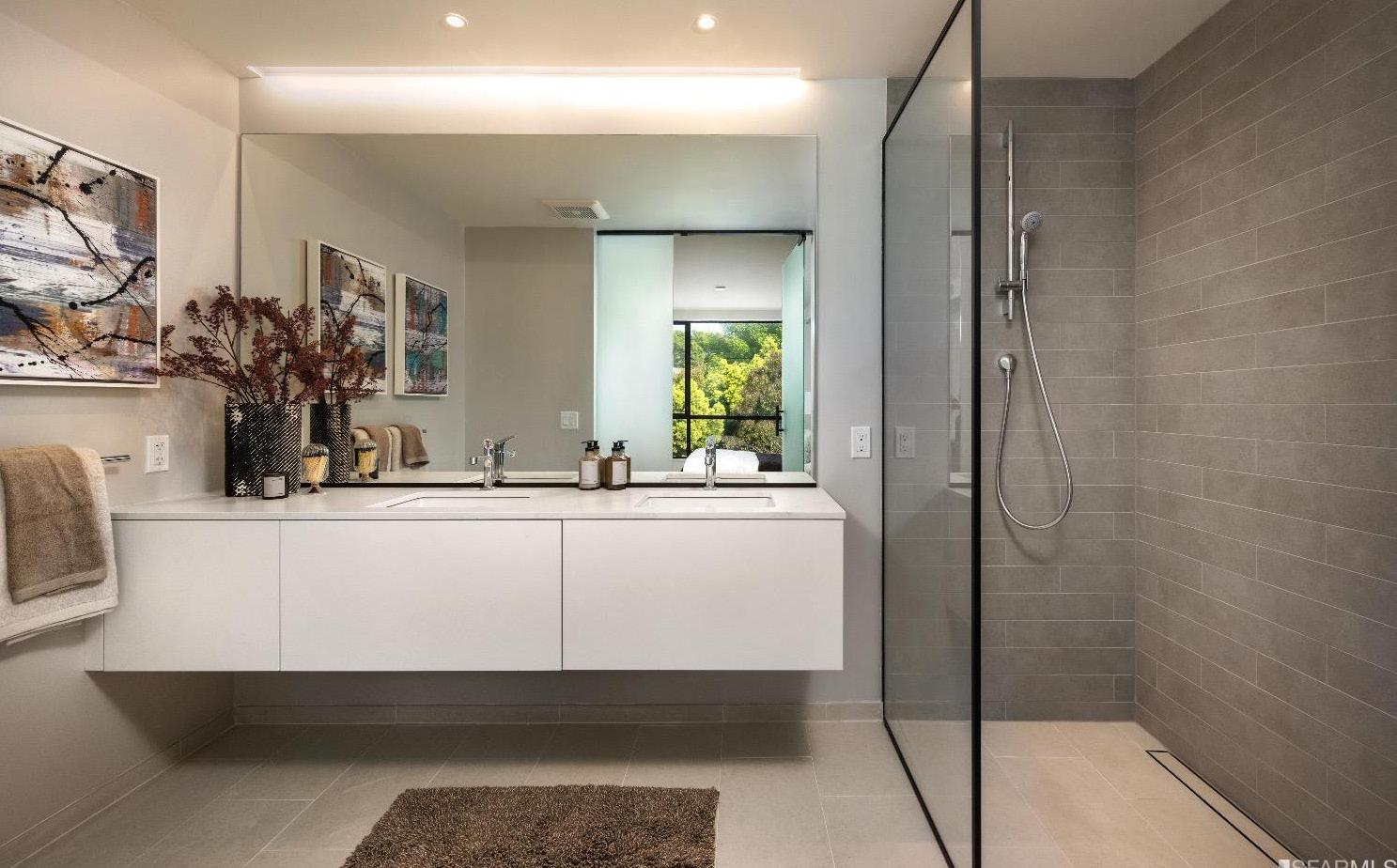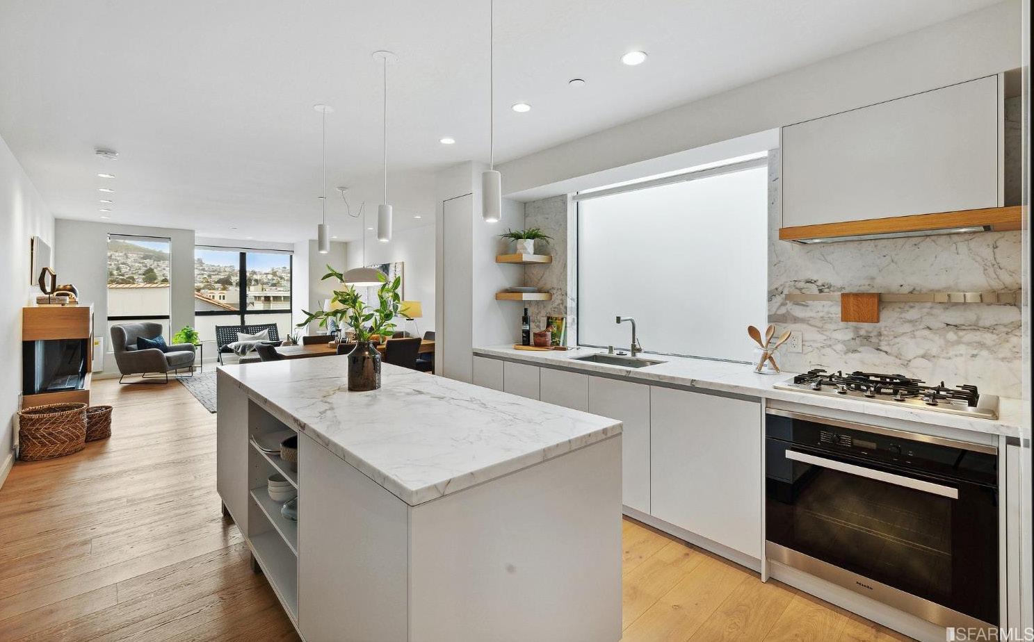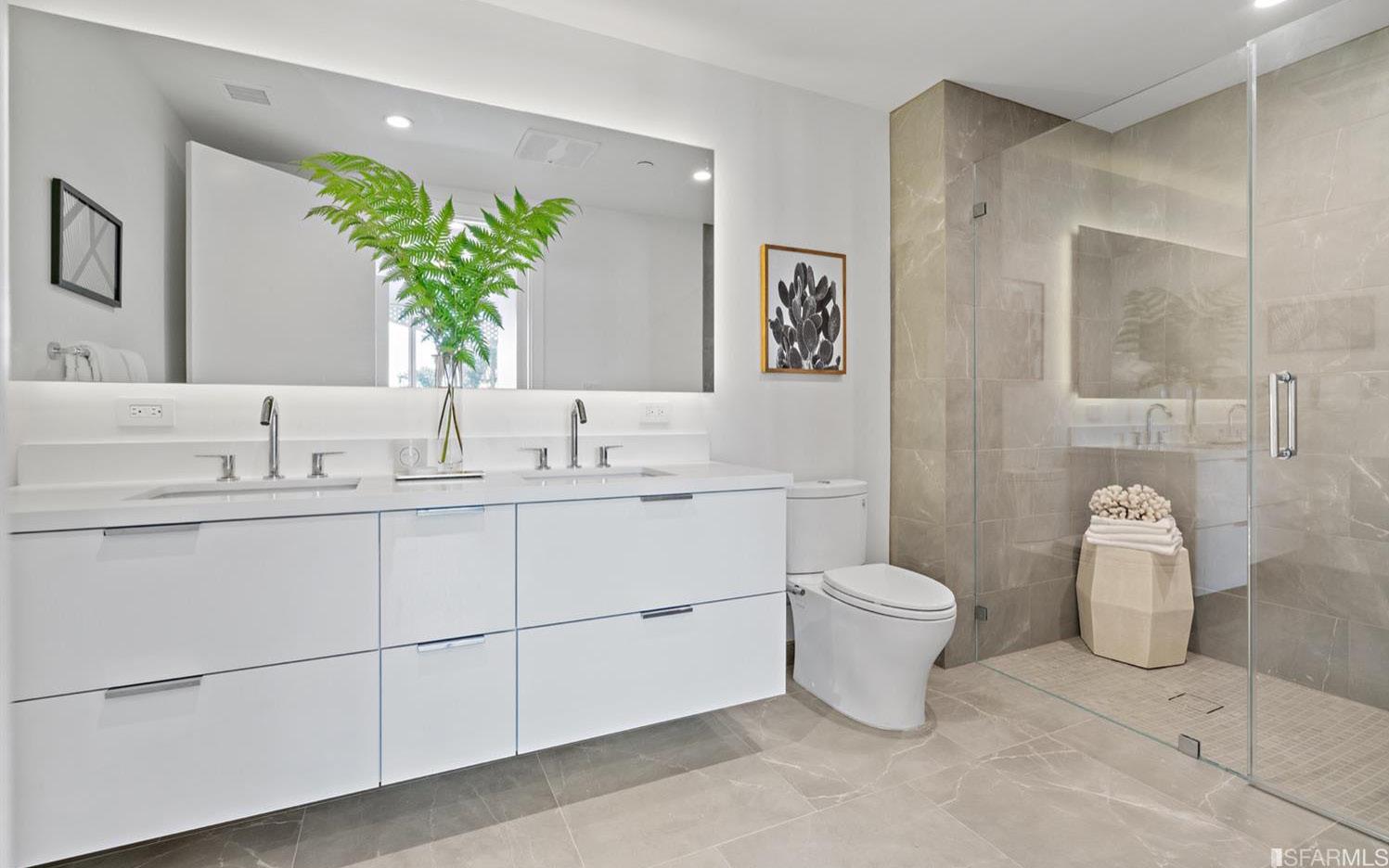 Features & Finishes: Diagonal-planked Siberian oak floors, Waterworks fixtures, Un-lacquered brass hardware, Bosch washer/dryers, Studio Becker Ash Molina gray cabinetry, Carrara marble counter tops and backsplash, Kitchens with Kohler sinks/Sub-Zero paneled refrigerators/Bertazzoni gas cook tops, ovens, microwaves/Bosch Ascenta dishwashers, Bathrooms with Chevron honed-finish olive porcelain tile floors/Decolav sinks/Brass wall sconces/Carrara subway tiled showers, Bay Bridge and City views