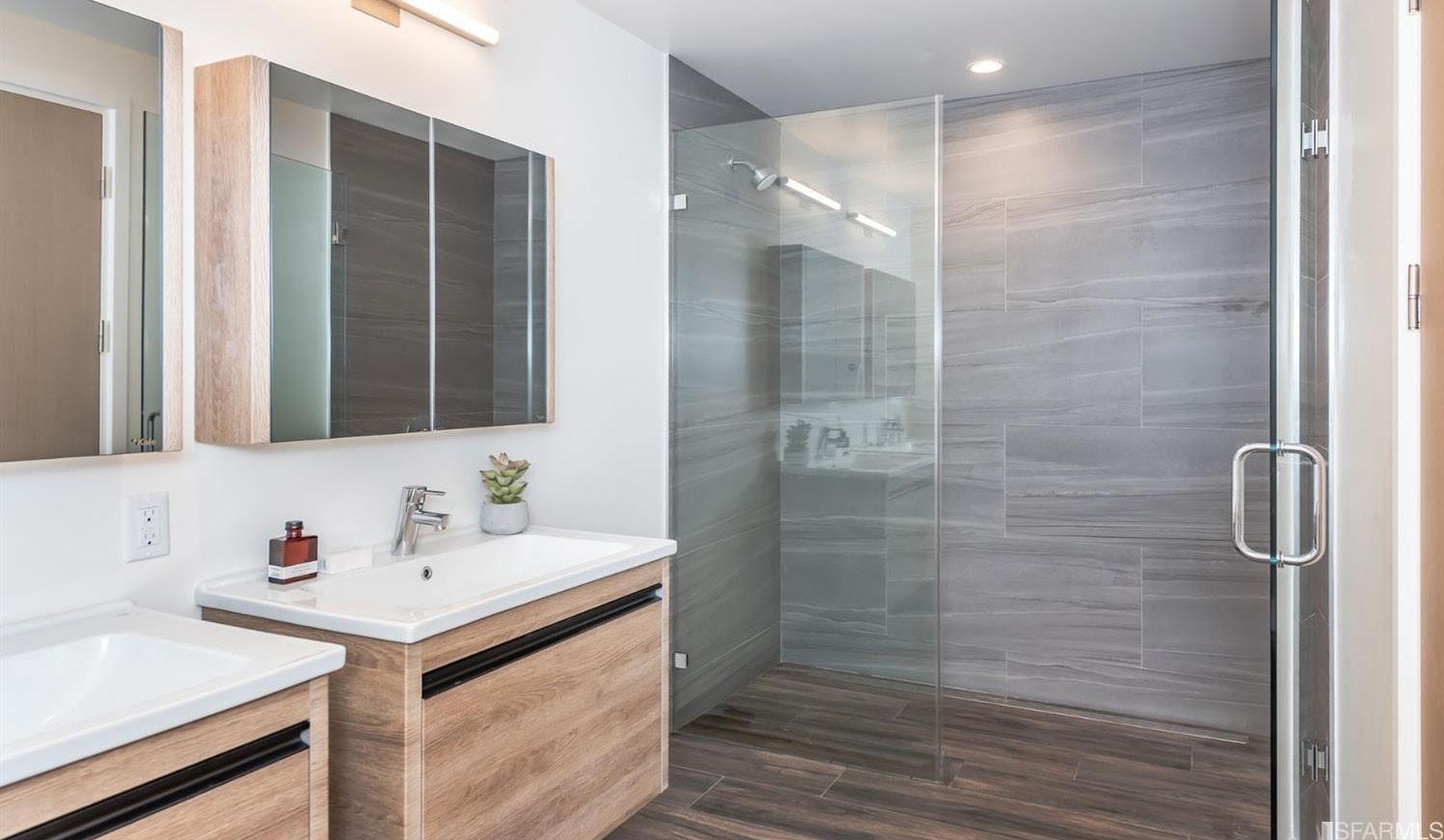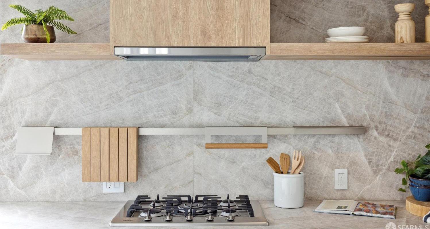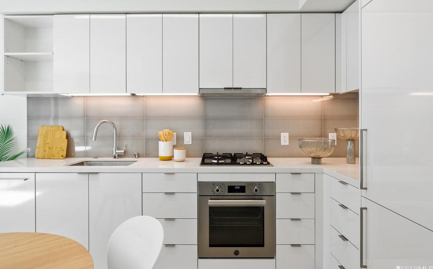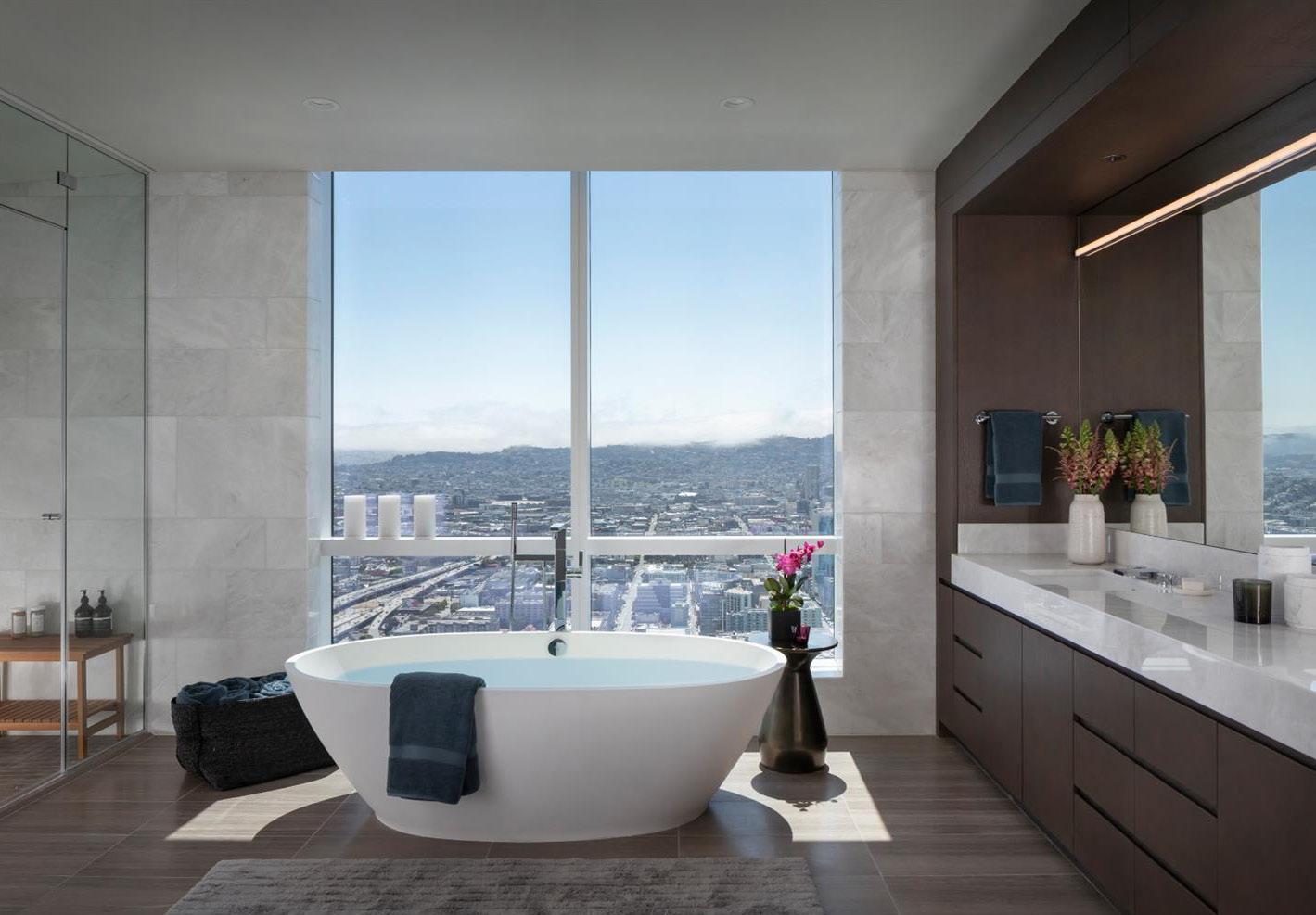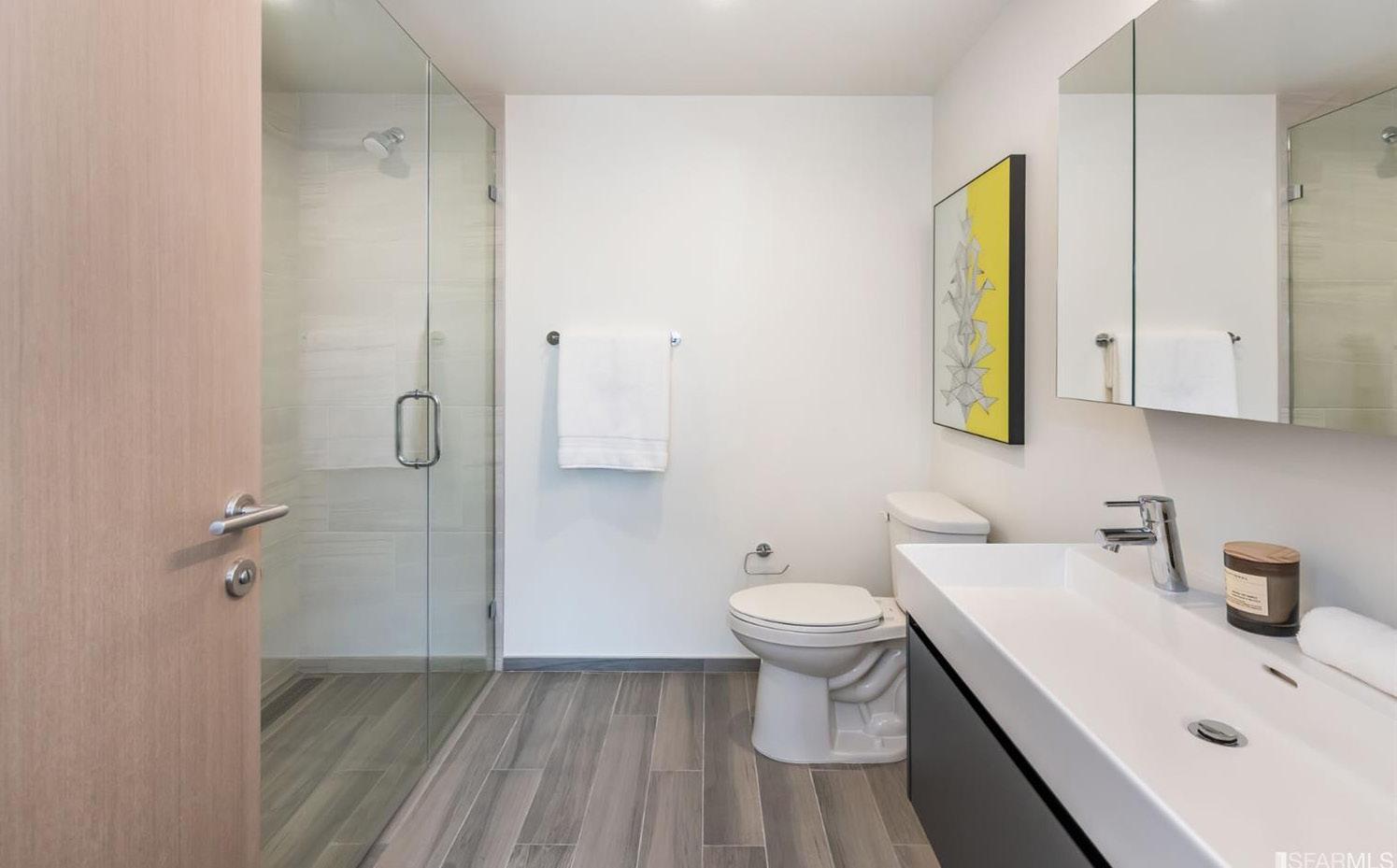 Features & Finishes: Diagonal-planked Siberian oak floors, Waterworks fixtures, Un-lacquered brass hardware, Bosch washer/dryers, Studio Becker Ash Molina gray cabinetry, Carrara marble counter tops and backsplash, Kitchens with Kohler sinks/Sub-Zero paneled refrigerators/Bertazzoni gas cook tops, ovens, microwaves/Bosch Ascenta dishwashers, Bathrooms with Chevron honed-finish olive porcelain tile floors/Decolav sinks/Brass wall sconces/Carrara subway tiled showers, Bay Bridge and City views