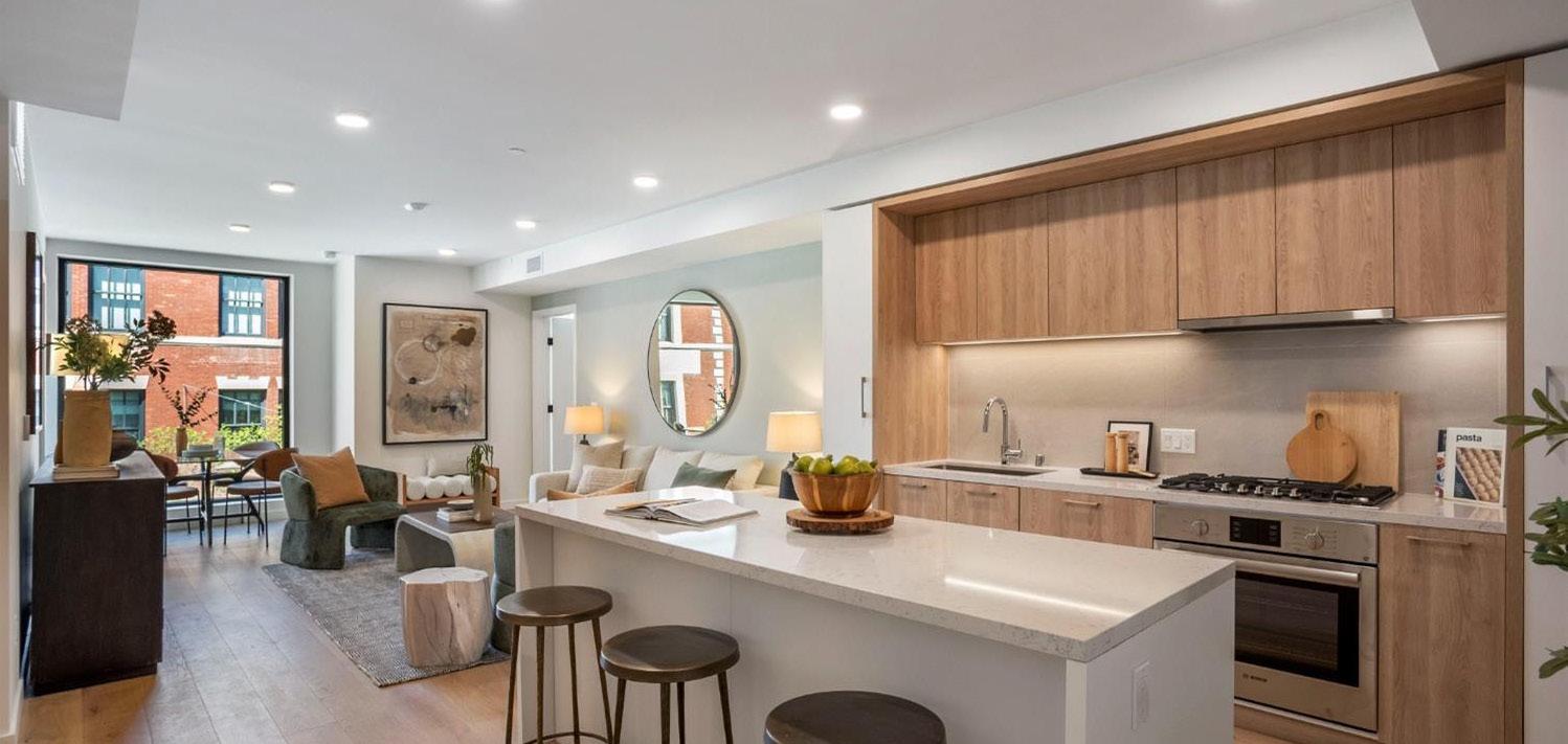 Features & Finishes: Quartz countertops, hardwood floors, in-unit laundry, Samsung/Bosch appliance package, heating & air-conditioning, soundproofing between units & common walls