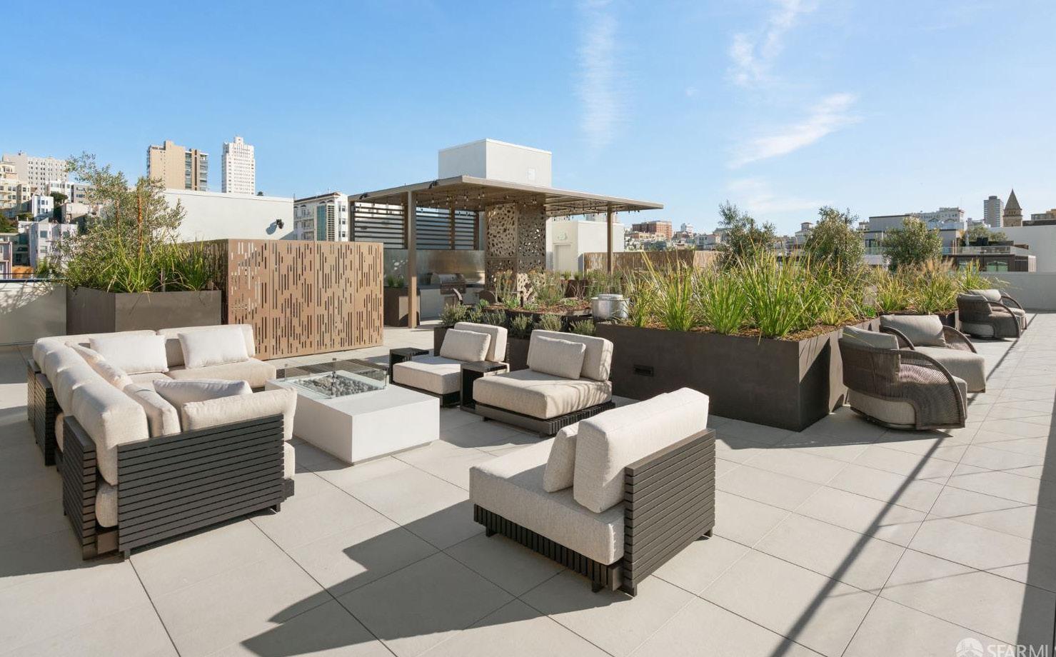 Amenities: Roof terrace with Golden Gate Bridge and City views, showcase lobby with attendant, lounge, elevator access to all floors, package room, garage parking, Google Fiber WebPass available, deeded storage space for each residence, community utility room
