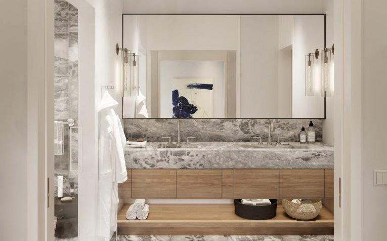 Features & Finishes: Individually-designed interiors with Bosch dishwashers, Smeg Gas ranges, Miami White quartz countertops, Grohe fixtures, white oak hardwood flooring, wool carpeting, Juliet balconies in select residences