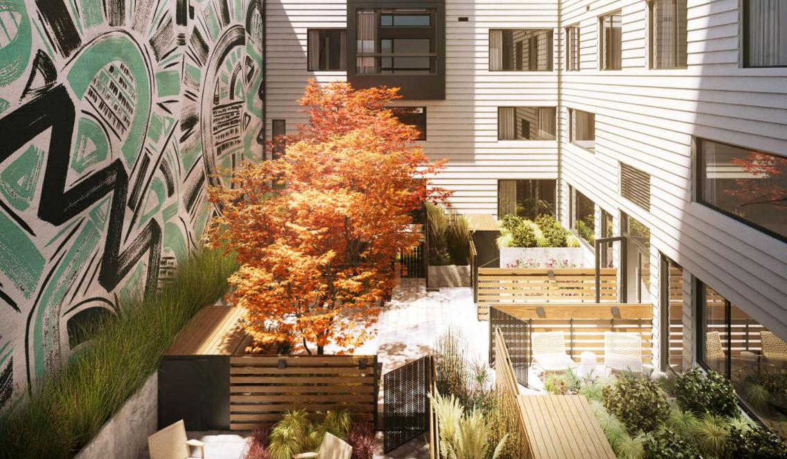 Amenities: Roof terrace with BBQ & fire pit, Courtyard, Lobby attendant, Virtual Doorman, Automated package lockers, Dog run and dog washing station, Bicycle parking & tools