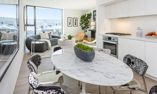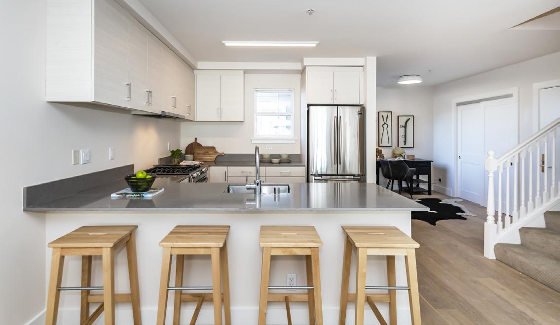 Developer: Encore Housing | Architect: Levy Design Features & Finishes: Quartz counter tops, Nobilia cabinets, Grohe and Kohler fixtures, Elkay and Kohler sinks, Smeg appliances, Porcelain tiled baths, Low VOC paint