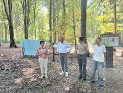 S Elian Vanderheijden (voorzitter Stichting Epen Bronnenland), wethouder Piet Franssen, Saira van Essen(Staatsbosbeheer)enPaulineFrijns(Camping Oosterberg), onthulden één van de natuurlijke speeltoestellen.