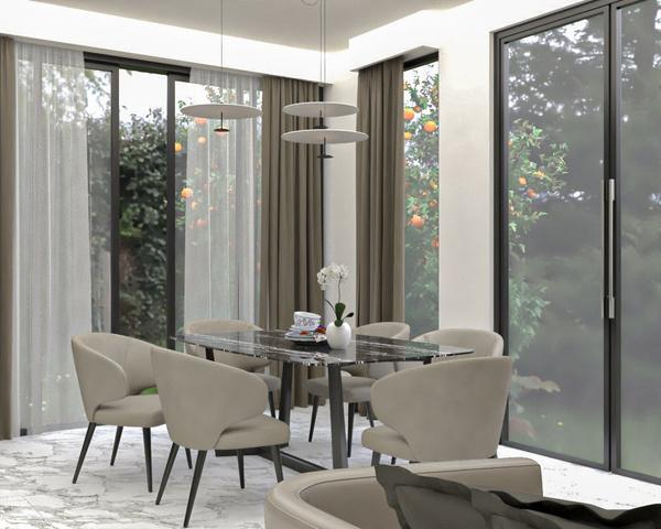 The client asked for modern and simple design. Using warm colour, less texture and simple shapes was the right dessicion for this house.
