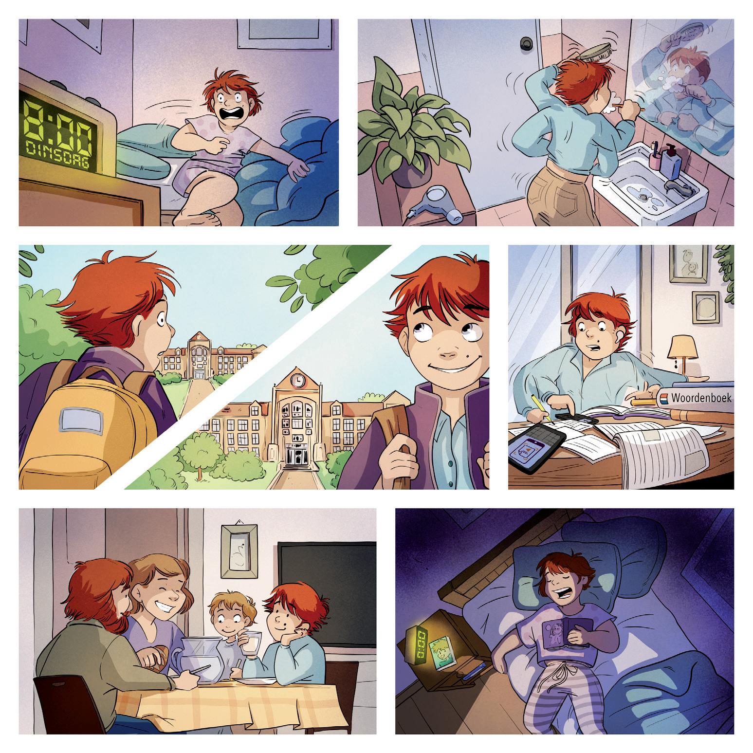 Na het ontbijt ga ik naar school. Ik studeer informatica en tekenen, omdat ik later mijn eigen spelletjes wil creëren.