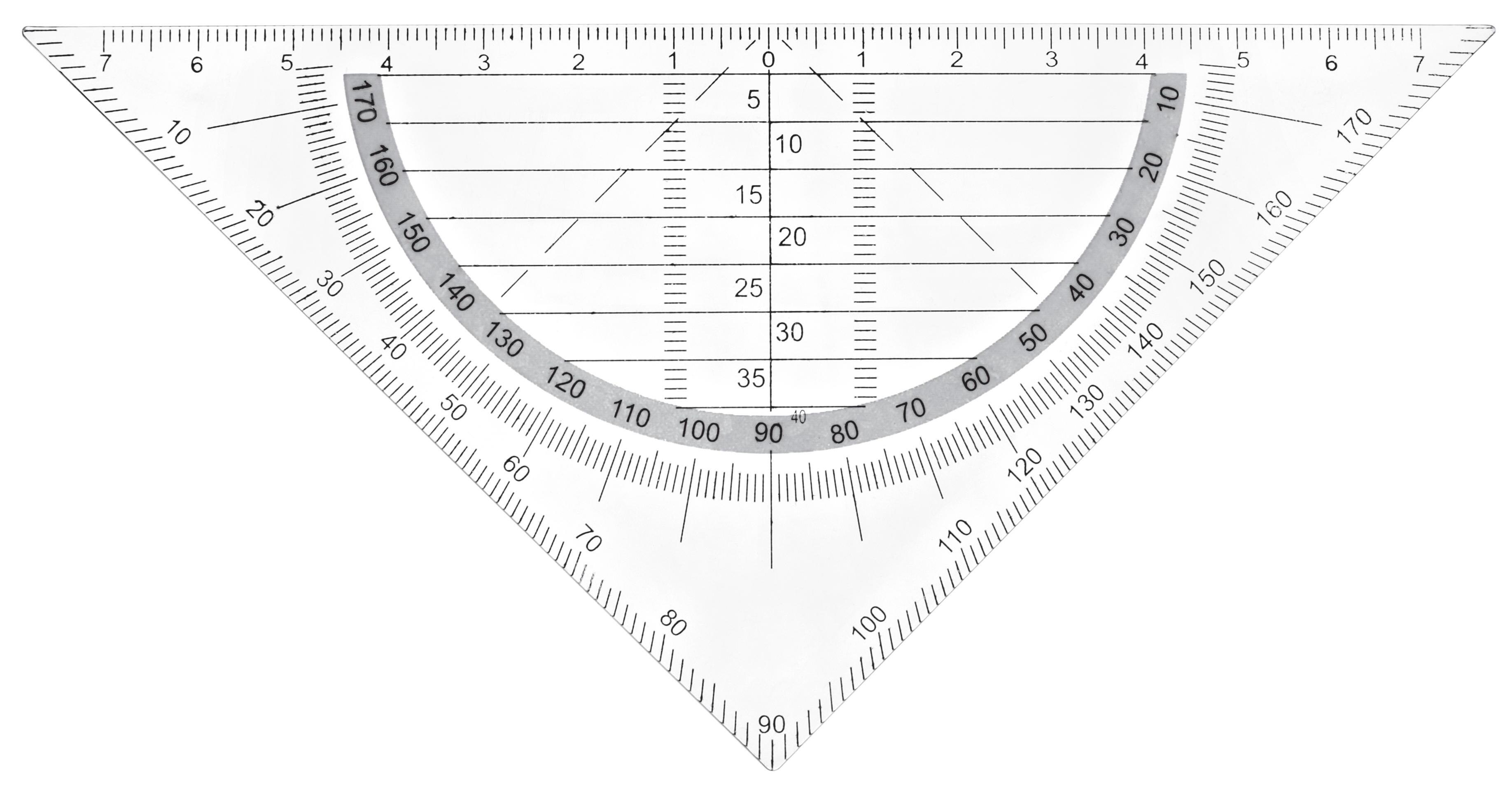 2. Des deux rapporteurs présents sur l’équerre, choisis celui dont 0° se situe sur ce côté.