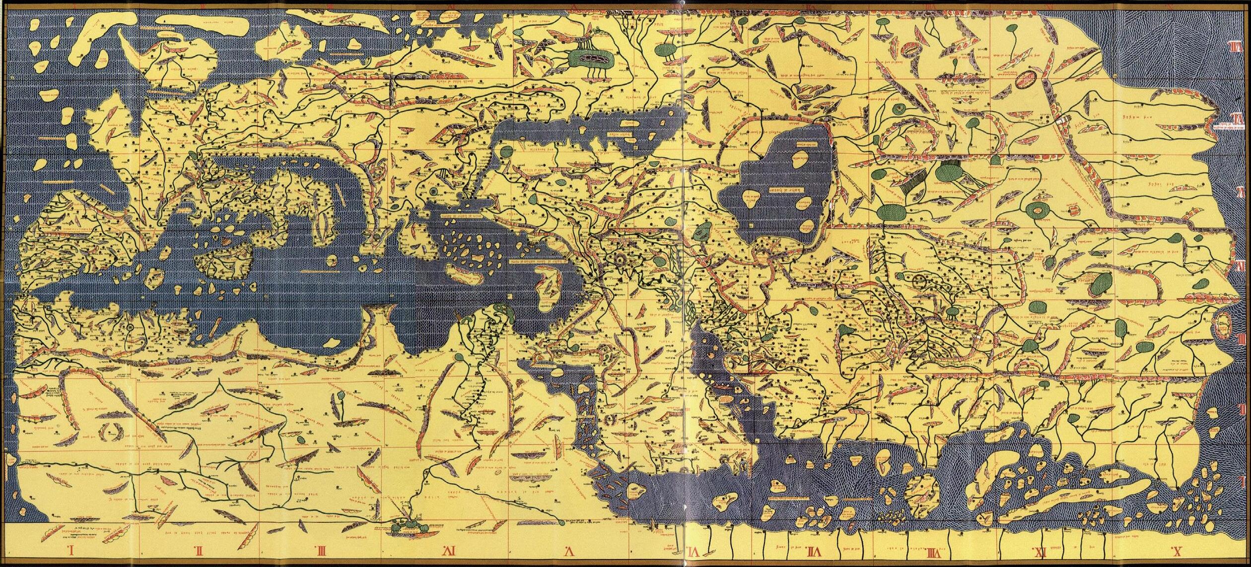 La plus ancienne carte du monde, gravée en Mésopotamie au VIII e siècle avant Jésus-Christ, montre une vision symbolique centrée sur Babylone et illustre les premières tentatives de représenter l’espace de manière organisée. Auteur inconnu. (8 e siècle av. J.-C.). Carte. Tablette d’argile. 12,2 x 8,2 cm. Londres : British Museum.