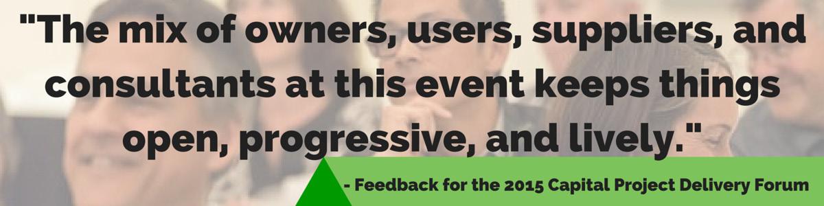 I would like to welcome all the participants: owners, consultants, and contractors. We have a very progressive agenda, with captivating presenters and panelists. Thanks to the very generous sponsors!