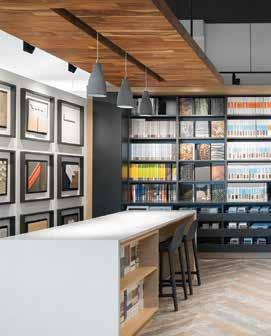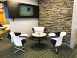 A series of smaller but still defined spaces are scattered throughout the open space, which is outfitted with a central concierge desk. “We’ve used acoustic insulation and barriers which provides a high level of privacy to our members and clients when meeting with our employees to discuss their financial and insurance needs,” adds Koutecky.