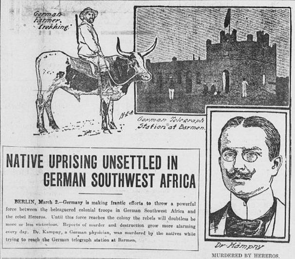 IMAGE: Images from German South-West Africa during the Herero Rebellion, Upper right: a German telegraph station at Barmen, Lower right: Dr. Kampny, a German physician 1904