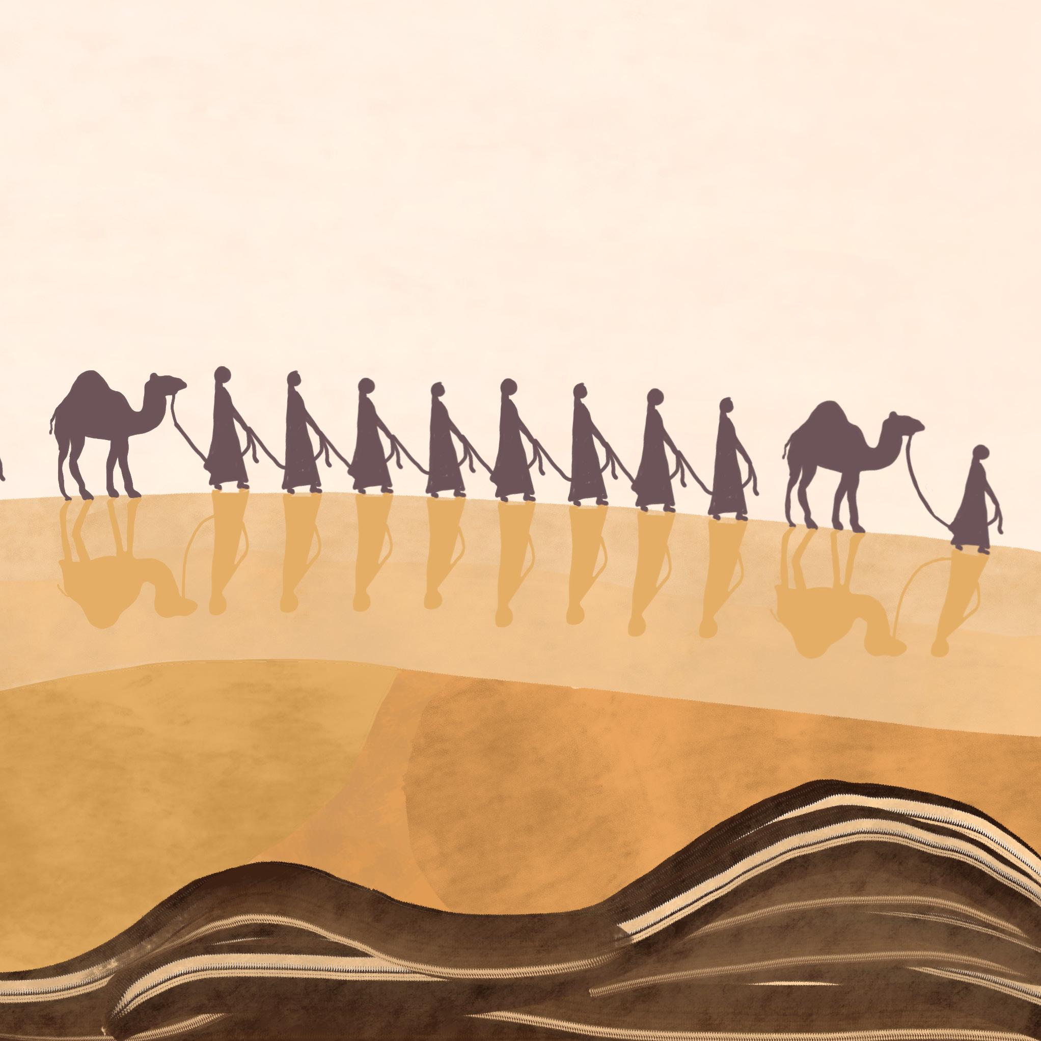 Plots hoorden ze het oorverdovende getrappel van kamelen.