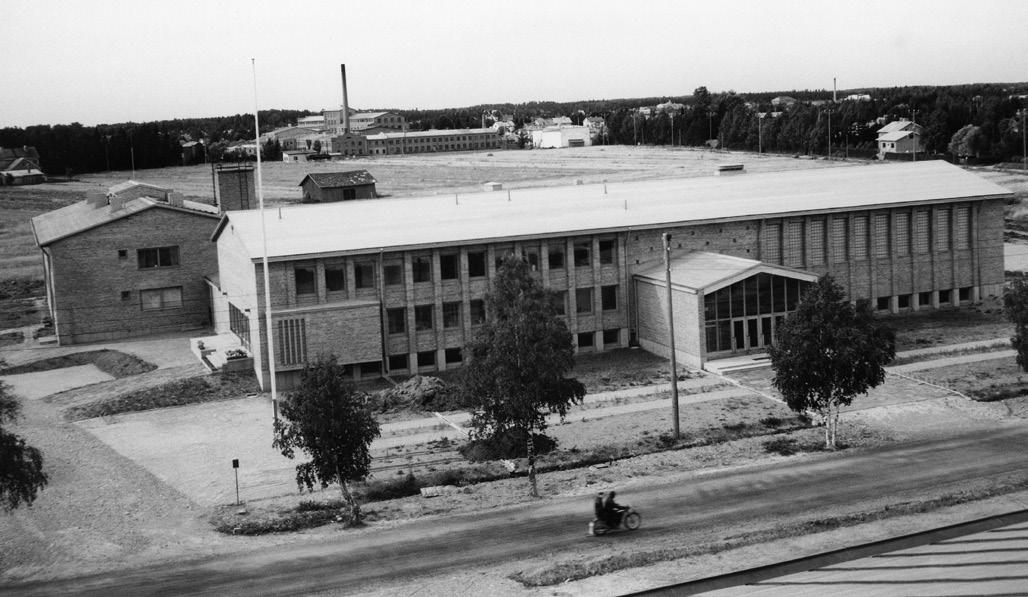 Kuvassa keskellä Asematien eteläpuolella näkyvä Tikkurilan kirkko valmistui pariksi tien pohjoispuolen kaupungintalolle. Niiden myötä Tikkurilaan muodostui silloisen Helsingin maalaiskunnan, nykyisen Vantaan, uusi hengellinen ja maallinen keskus. Kunnan aiempi keskus Malmi oli siirtynyt Helsingille suuren alueluovutuksen yhteydessä 1946. Kuva: Postikortti 1967, Kuultokuva Oy/Vantaan kaupunginmuseo.