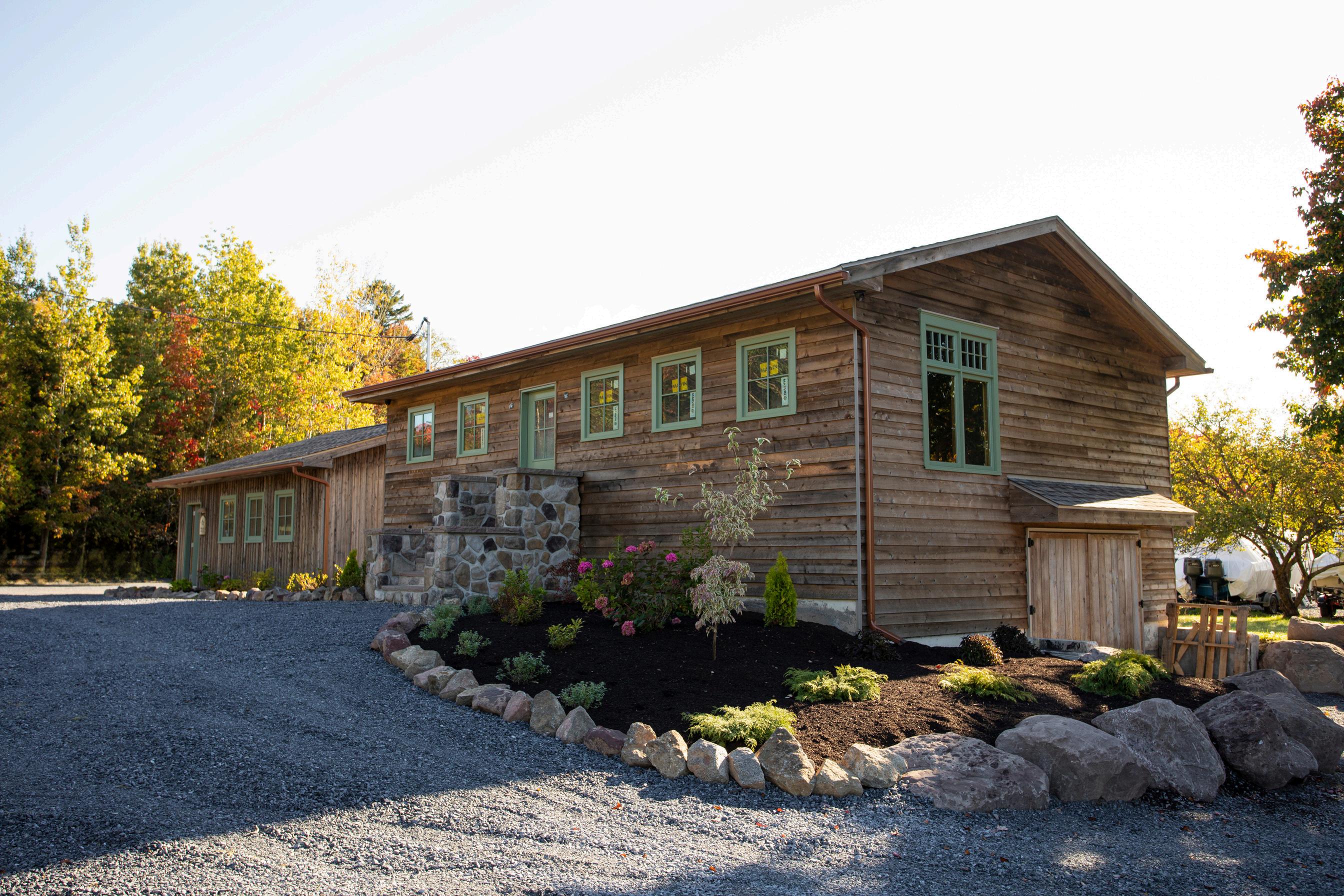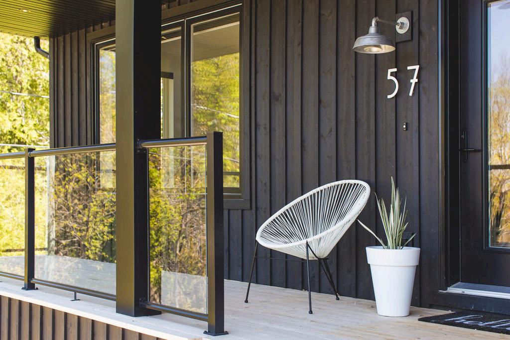 Respecting the riverfront surroundings is mostly due to the Lepage Millwork Windows purchased locally through Ultimate Windows in Saint John. Sliding glass doors that give this bunkie its expanded waterview and glass cabin frontage. Bursting with a look and feel of nature-inspired connection.
