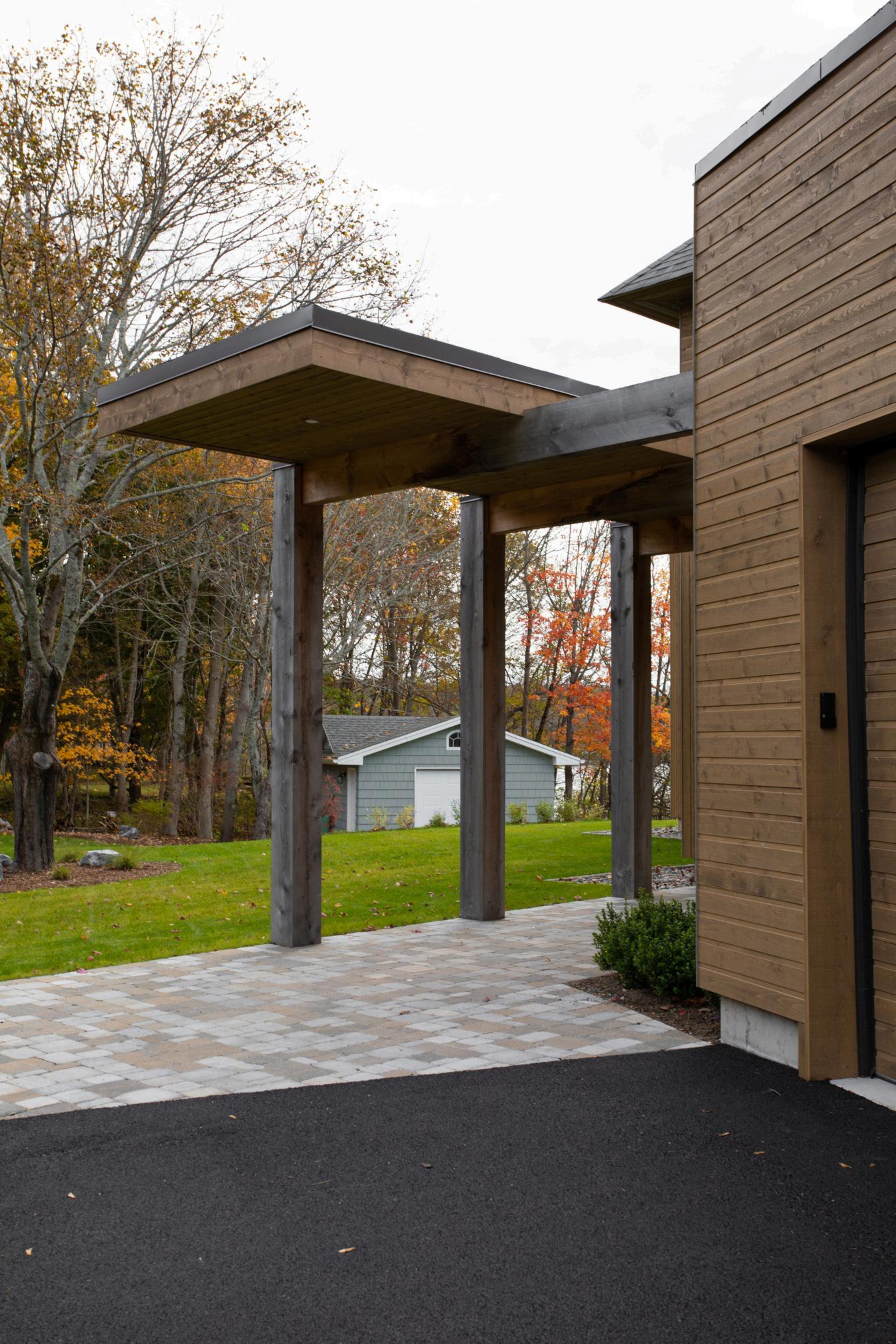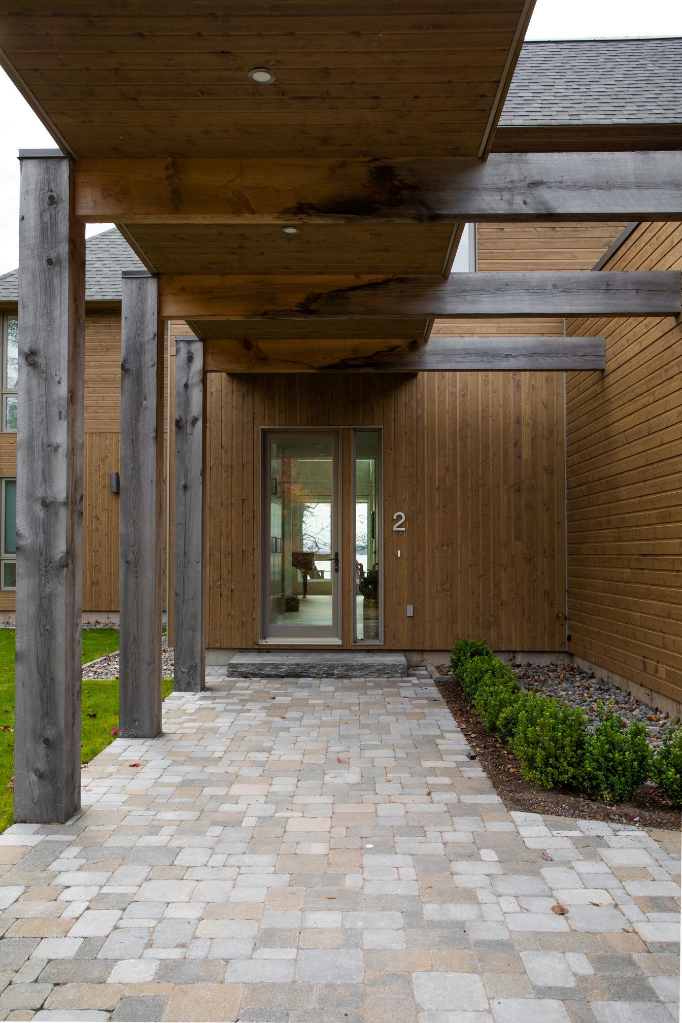 The clients totally customized their Fraser Wood Siding colour as they wanted a warm monochromatic black-onblack look. Board and batten? It’s there too. All along the first level. The gable end is laid horizontally adding just a bit more visual interest.