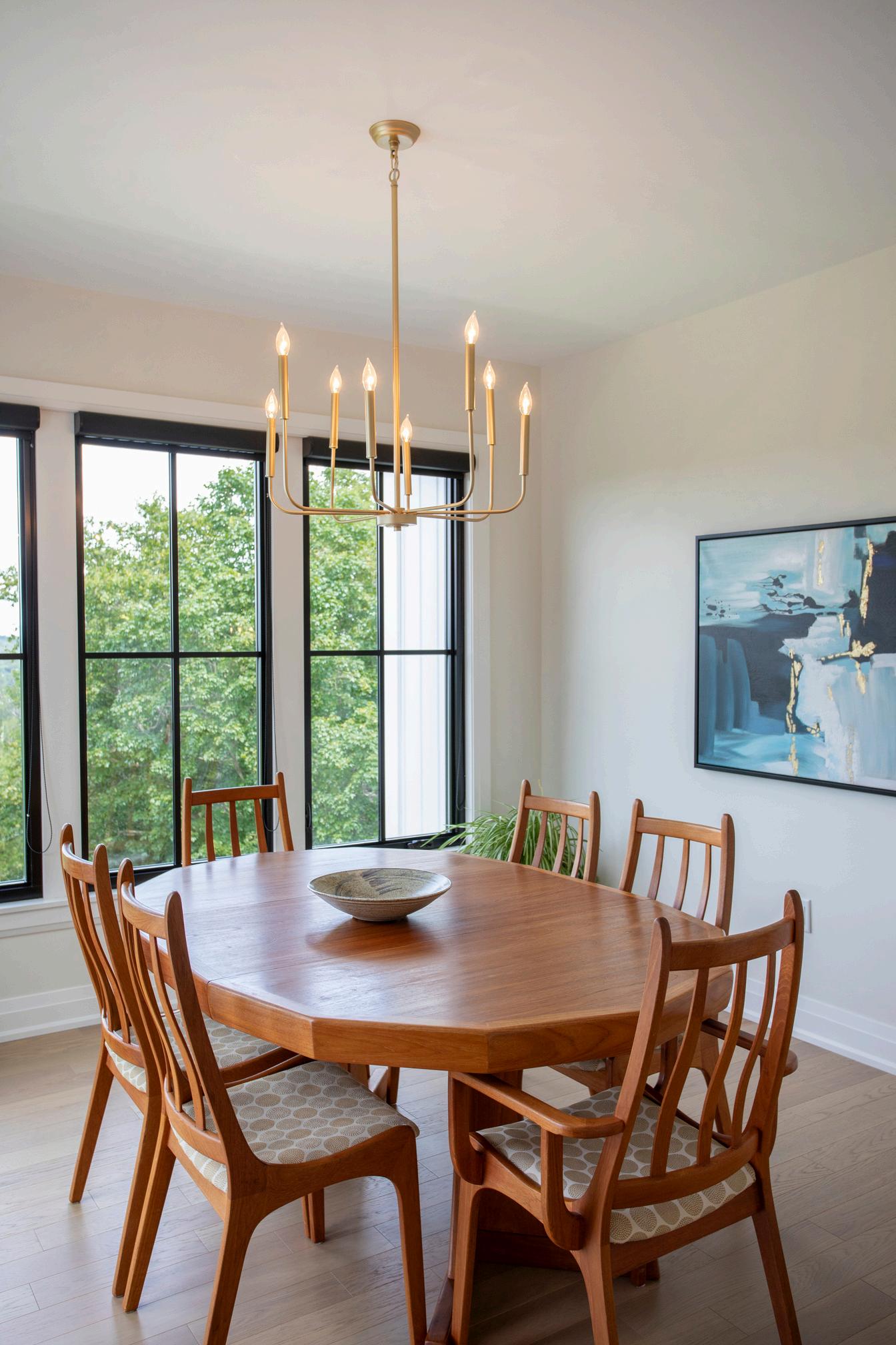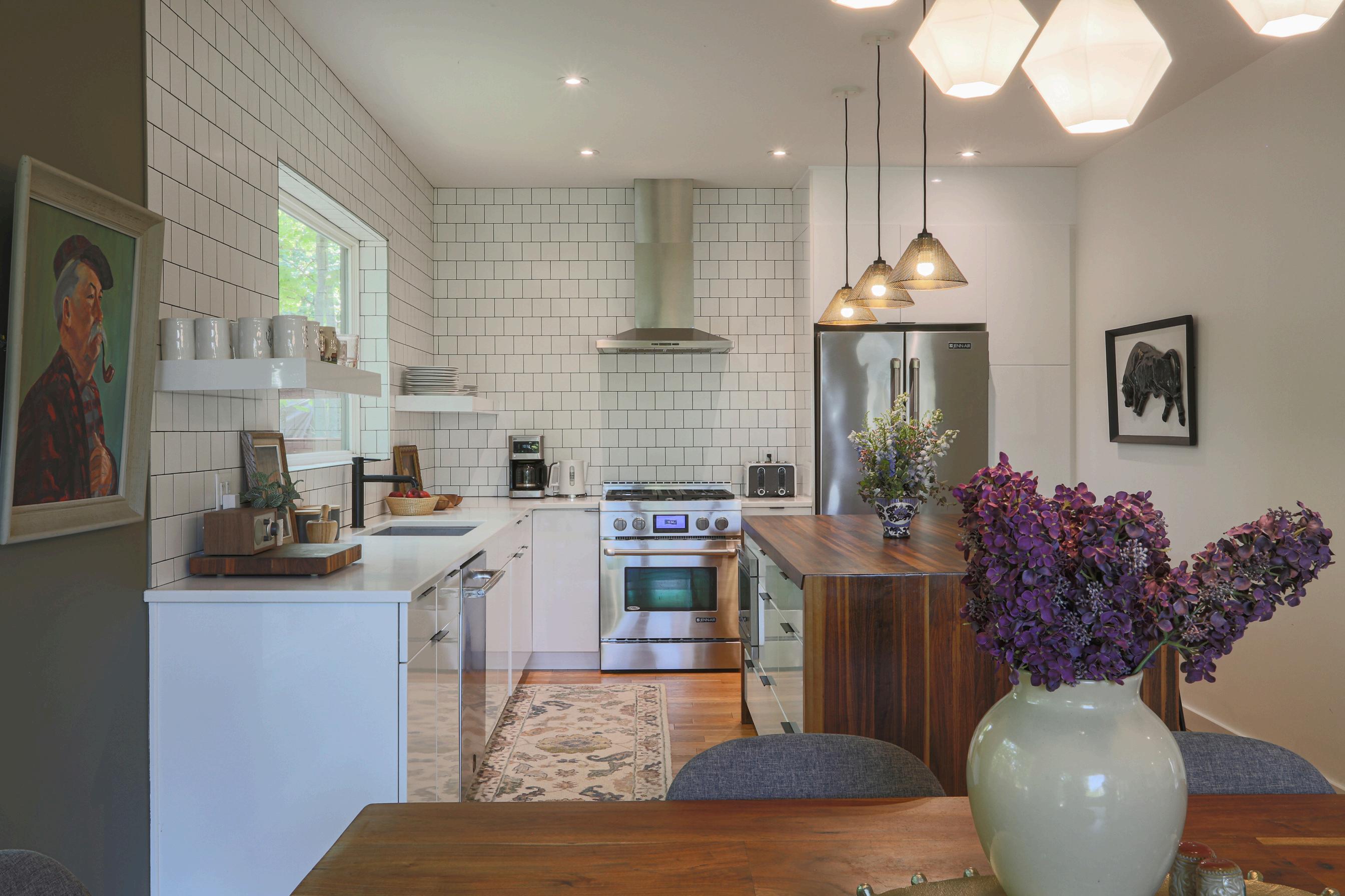 Extending the herringbone subway tile into the dining room was not only a practical solution to dirty little hands, it was also meaningful as it reflected a restaurant the couple like to frequent when possible.