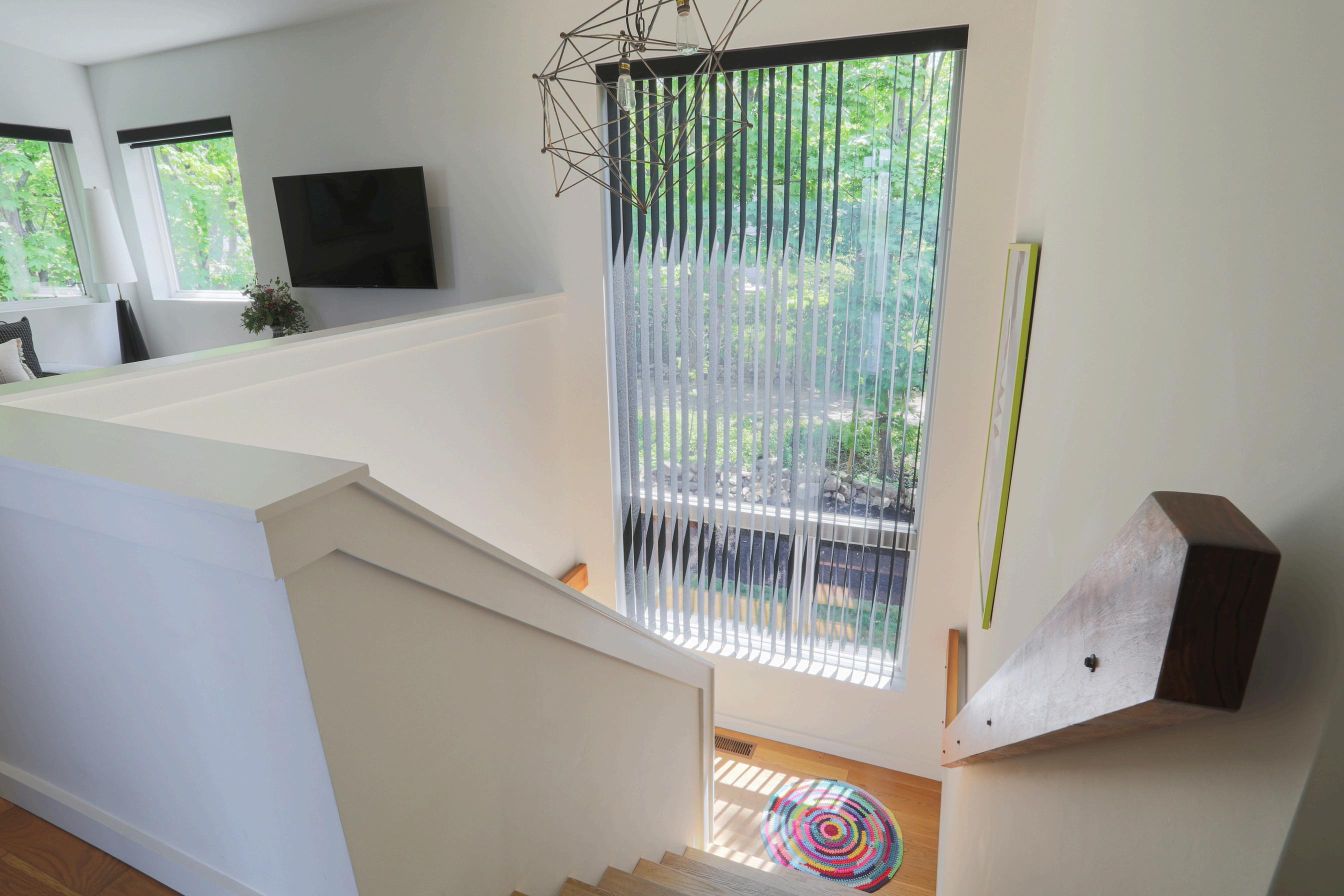 Shadowy sunlight against the warm white walls of the upstairs bedrooms give these spaces an ambience that reminds us of the how the river shimmers through its shadows just outside. The master bedroom and its ensuite carry the same feel as the other three bedrooms, warm and gentle.