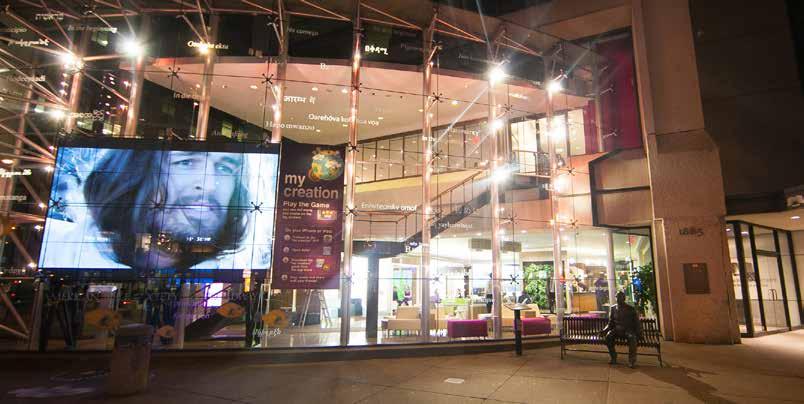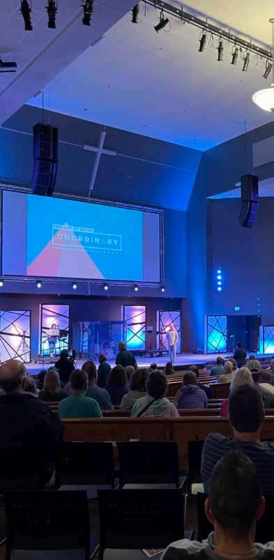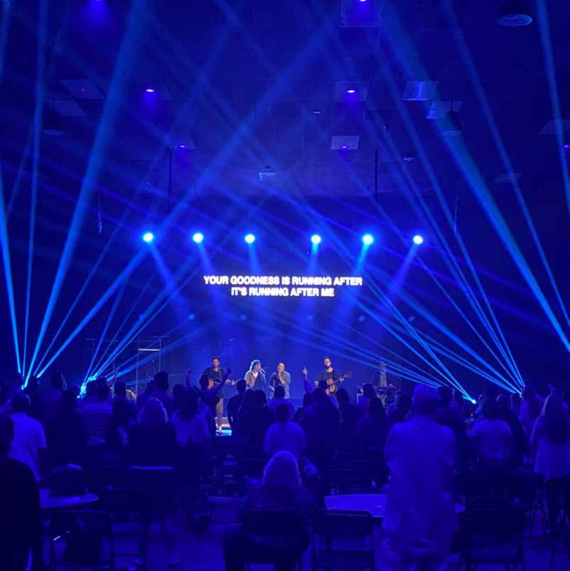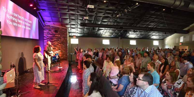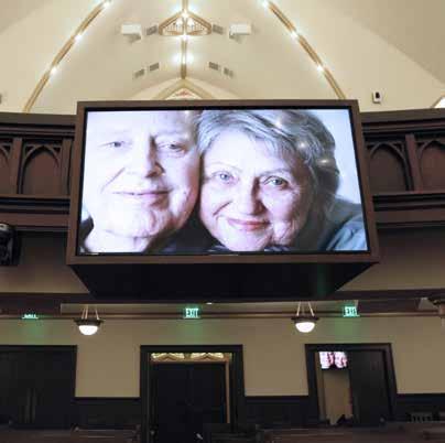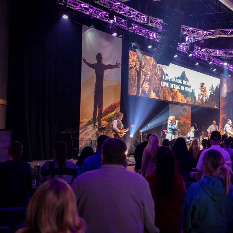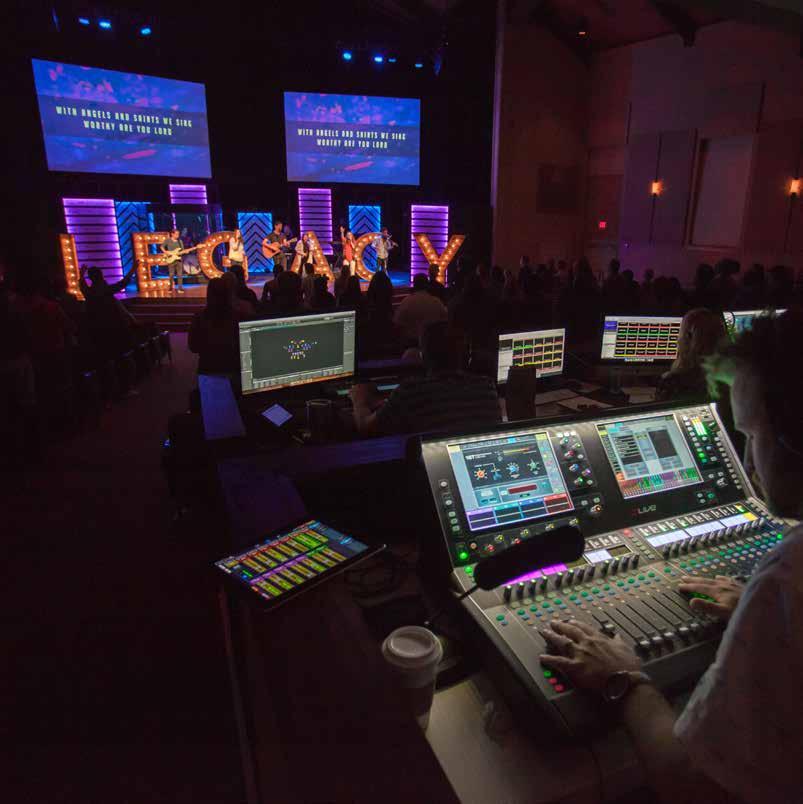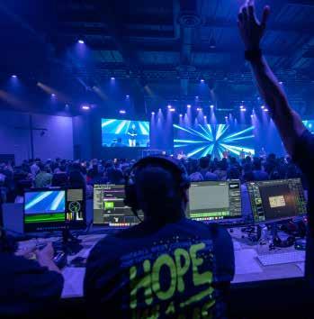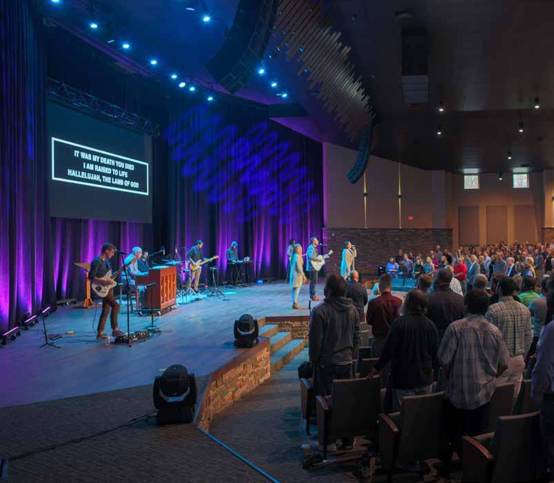 • Fine-pitch LED wall and interior LED monitor wall integrated for presentation of branding messaging and custom Biblecentered content.