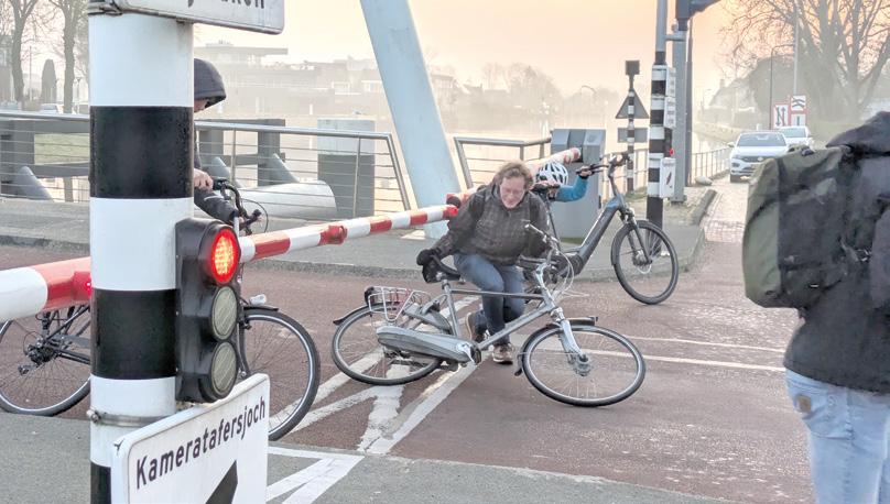 gangers, fietsers en automobilisten aan beide kanten van de brug. De storing begon rond kwart over zeven. Na een kleine tien minuten wachten, besloten de eerste voetgangers en fietsers onder de slagbomen door te kruipen. Automobilisten probeerden om te keren.