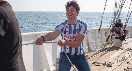 ‘Natuurlijk leerde ik een beetje zeilen, maar het sociale aspect maakte de meeste indruk. Zelfs als je weer in Harlingen aankomt, blijf je nog een paar dagen samen op het schip. Je doet leuke dingen op het schip en aan wal. Sociaal gezien doe je zulke leuke ervaringen op, die je niet zou meemaken in het dagelijks leven. Zo sta je al meteen groot feest te vieren met iemand die je misschien nog maar net kent, alsof het een van je beste vrienden is.’