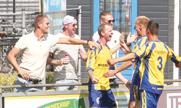 3e klasser Oudehaske van de mat geveegd en was de 3-0 nog een matige afspiegeling van het wedstrijdbeeld. In de finale trof Franeker het altijd hard werkende Anjum dat met de afzwaaiende Stephan Overkempe een scorende spits in de gelederen had, getuige zijn totaal van 271 competitie doelpunten. Na een wat zenuwachtig begin bleek Franeker op alle fronten sterker. Na 90 minuten stond er een 6-2 eindstand op het scorebord. SC Franeker mag zich vier jaar na de samenvoeging tussen de zondag en zaterdag afdelingen weer 3e klasser noemen en dat is gezien het veldspel meer dan terecht. LEES HET VERSLAG OP PAGINA 25