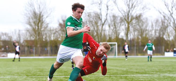 ten van het voetbal en trainer Henk Konings hanteert daarin een duidelijke lijn. Ook het principe “never change a winning team” paste hij toe, door de winnende basisformatie van de wedstrijd van vorige week tegen Workum opnieuw te laten starten. Zuur voor David, maar o wat zal zijn invalbeurt hem zoet hebben gesmaakt. Beide kregen gelijk, de trainer met zijn gouden wissel, de speler die zijn visitekaartje op ondubbelzinnige wijze afgaf en vervolgens ook nog eens terecht werd gekozen tot man of the match. Tot aan de invalbeurt van David, leek de verkiezing tot man of the match richting