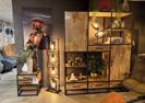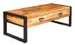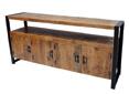 Stoer tv-meubel (118 cm breed) in rough mango met zwart metalen onderstel.