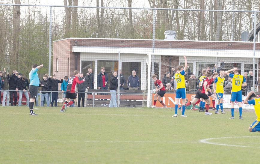 aan iedereen voorbij te gaan, maar de bal viel prompt voor de voeten van Jorn Lars van Beem en deze schoof de bal in het doel, 89ste minuut 1-1.