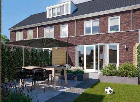 “In deze eerste fase bestaan de woningen overwegend uit maximaal 2 bouwlagen met een kap. Dus geen grootschalige bebouwing maar een met een dorpse schaal. We hebben ervoor gekozen om diverse woningtypen te clusteren qua stijl en materiaalgebruik. Zo vind je allerlei woningen in jaren ’30-stijl bij elkaar aan een straat. Denk aan roodbruin gemêleerde baksteen, horizontale lijnen in het siermetselwerk, witte luifels en de overstekende goot. Verder hebben sommige woningen een erker, die ook kenmerkend is voor deze bouwstijl. Deze erker zorgt natuurlijk voor extra licht in de woonkamer, maar ook voor alzijdig zicht op de omgeving, hetgeen bijdraagt aan de sociale veiligheid. Verderop k o mt een cluster met woningen in een wat modernere stijl. Gebouwd in lichte baksteen met donkerkleurige kozijnen en houten betimmering aan de gevels. De dakkapellen zijn opgemetseld. Om een lange rij te doorbreken staat er geregeld een woning dwars gebouwd. Andere woningen hebben soms een luifel boven de benedenverdieping. Al die elementen bij de diverse woningtypen zorgen ervoor dat bewoners makkelijk hun eigen huis herkennen tussen de vele andere. Dat versterkt de beleving van een eigen ‘thuis’. Samen met het vele omgevingsgroen ontstaat zo een aangename woonplek voor mensen van jong tot ouder.”