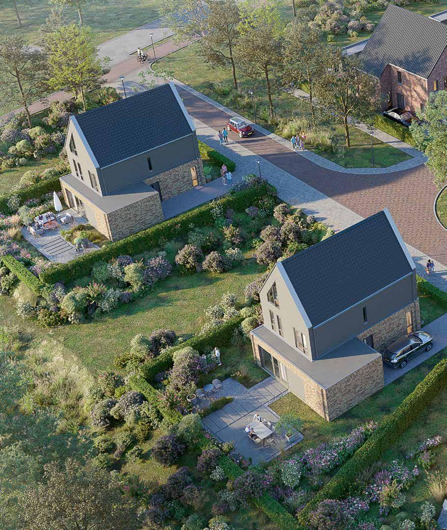 Daarbij wordt veel gevarieerd, zowel tussen de onderlinge deelgebieden, als ook tussen de woningen zelf. Er komen zowel tussen- en hoekwoningen als tweekappers en vrijstaande woningen. Veel van die woningen krijgen een andere vormgeving, van wat hoger en statiger tot wat dorpser en boerderij-achtig. Net als in bestaande dorpen zien bewoners straks meteen wat hun woning is. Het geheel wordt een aantrekkelijk en persoonlijk ensemble van fijne woningen, dichtbij het groen.