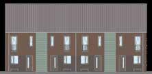 Deze woningen vormen een lint op zichzelf en hebben een andere vorm. De bovenverdiepingen hebben een natuurlijke houtlook. Ook op de benedenverdieping komt dat hout terug. De toepassing van geel/bruin gemêleerde baksteen versterkt dat natuurlijke karakter.