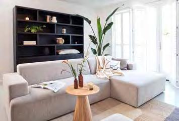 De steenstrips bij de keuken in hoekopstelling dragen zeker aan die sfeer bij. De zwarte kleur van de keuken zorgt voor contrast.” Puru en Emily wilden de keuken graag aan de voorkant van de woning hebben, zodat de zithoek met openslaande
