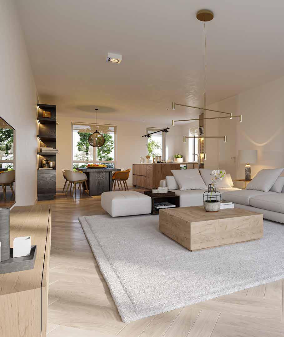 Dit Woon!magazine is bedoeld om de sfeer en de mogelijkheden van dit project te laten zien. De in dit Woon!magazine aangegeven keuken, huishoudelijke apparaten en inrichting c.q. aankleding geven een impressie van de mogelijkheden en behoren niet tot de standaard uitrusting van de woning. De juiste positie van elektra/schakelmateriaal, rookmelders, afzuigpunten t.b.v. ventilatie e.d. staan op de verkooptekeningen vermeld en zijn niet in de plattegronden opgenomen. Aan de beelden, illustraties, plattegronden en teksten in dit Woon!magazine kunnen geen rechten ontleend worden.