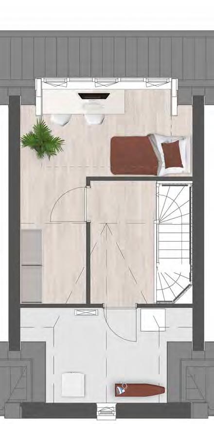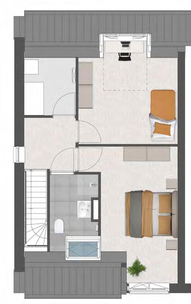 • Ruime slaapkamer aan achterzijde met directe toegang via schuifdeur naar de badkamer